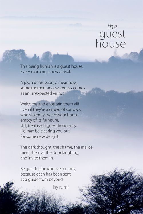 To “just be,” I need to accept the present moment. Am I safe right now? Do I have everything that I need? Can I let my emotions teach me about life? Rumi has a fascinating poem about thoughts and emotions: